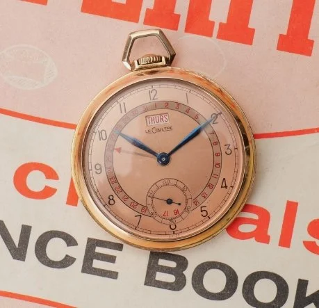 LeCoultre 14k Pink GF Day-Pointer Date Pocket Watch