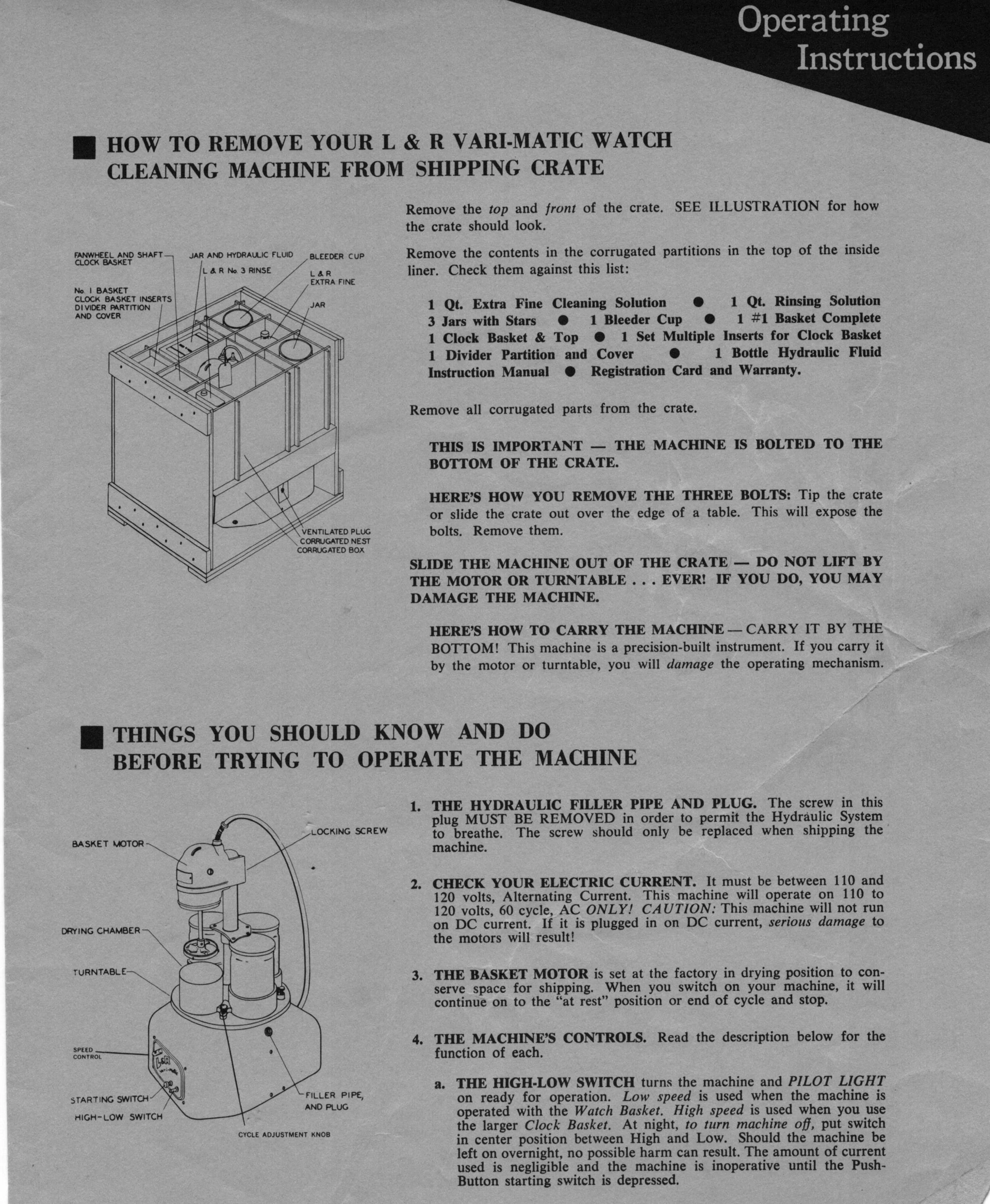 L&R Vari-Matic Watch Cleaning Machine Operating Manual