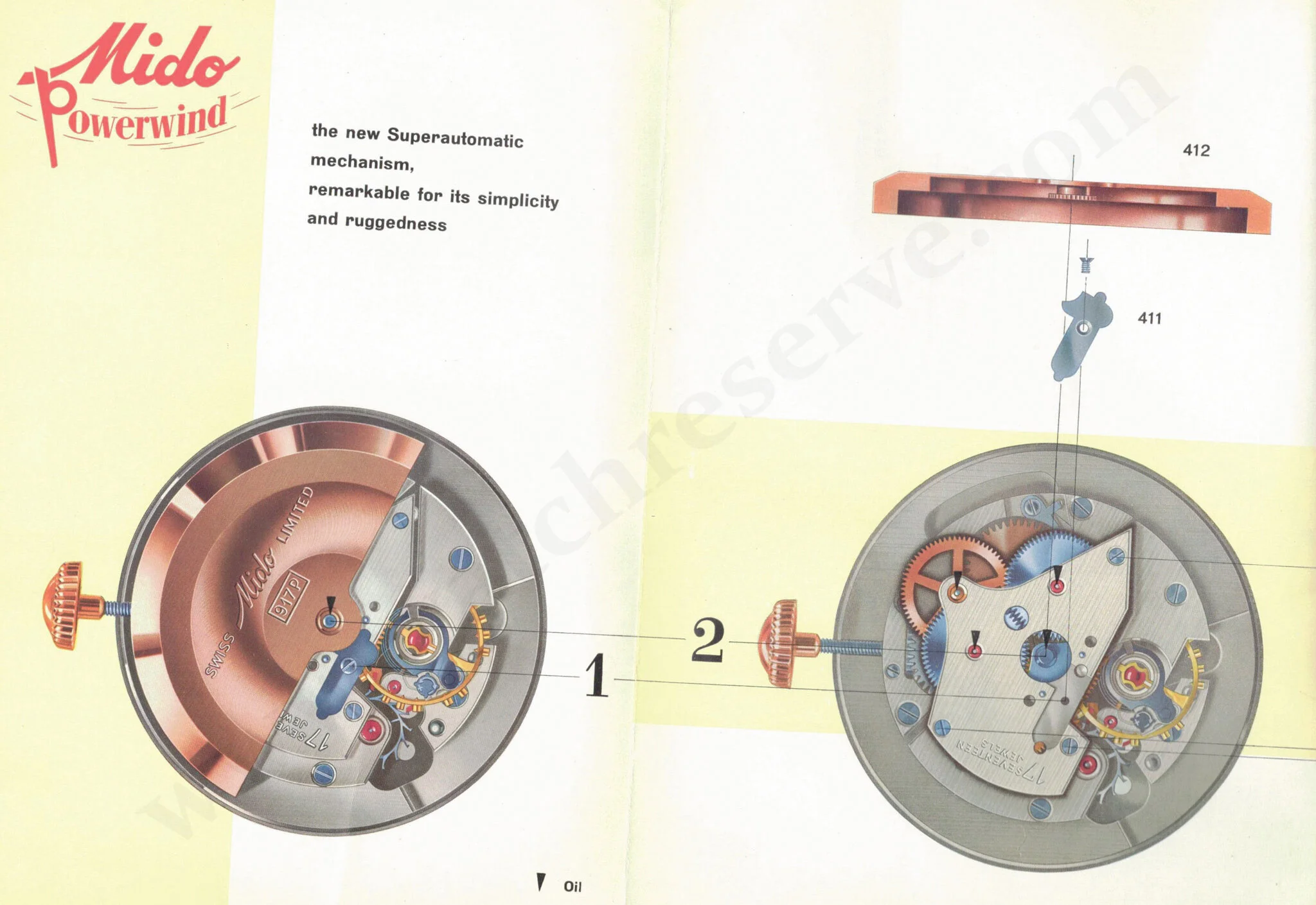 Invention of the "Powerwind" winding system – simplification in design from 16 to 7 parts. In addition to the simplified design, this movement also had a longer running reserve and was deemed to be one of the most easiest watches in the world to service.