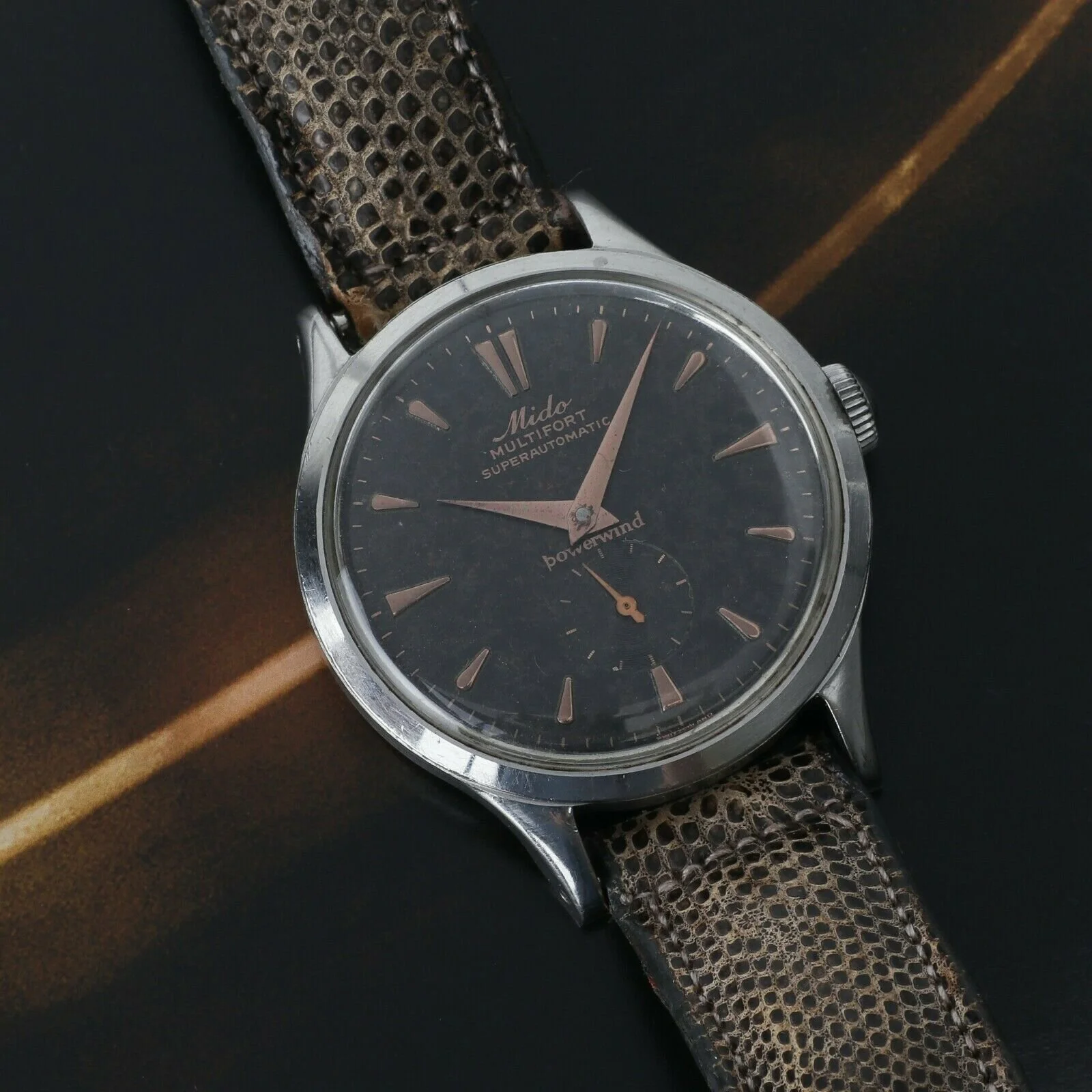 In 1934, Mido launched the Multifort design, the first Mido to use a self-winding automatic. The movement was absolutely watertight, antimagnetic and impact resistant. During this time period, Mido used a Robot as its ambassador as a symbol of progress and robustness. A comic strip from this era featured the Mido Robot and its adventures.